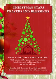 - Stars and BlessingsOn Saturday December 14th you are warmly invited to come to Nuneaton URC between 10am and 12 noon to hang a star on the Christmas tree with a request for prayer or to remember a loved one, near or far or no longer with us. We will be serving hot drinks and there will be carols playing… Read more: Stars and Blessings